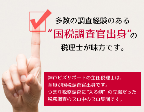 神戸ビズサポート総合会計税理士事務所には、税法のグレーゾーンを知る国税局調査部出身の経験豊富なプロの税理士が多数在籍しており、経験を活かした最大限の節税を全力でお手伝いすることをお約束します。是非、私たちへお気軽にご相談下さい。